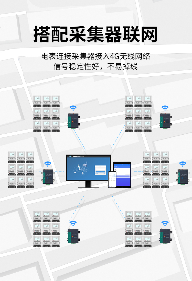 遠程抄表系統(tǒng)構成:主站系統(tǒng)(物聯(lián)網云平臺)、集中器(采集設備)及智能電表(計量終端),下面是基本原理圖。