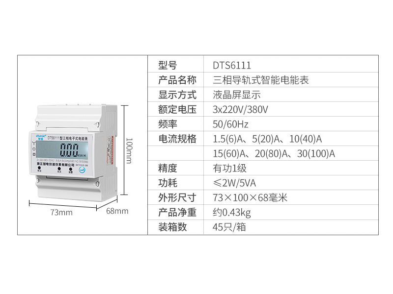 浙江智電導軌式安裝電能表,它用于380V/220V/100V/57.7V,采用標準DIN35mm導軌式安裝,結構模數化設計,寬度與微型斷路器匹配,可方便安裝于照明箱內。